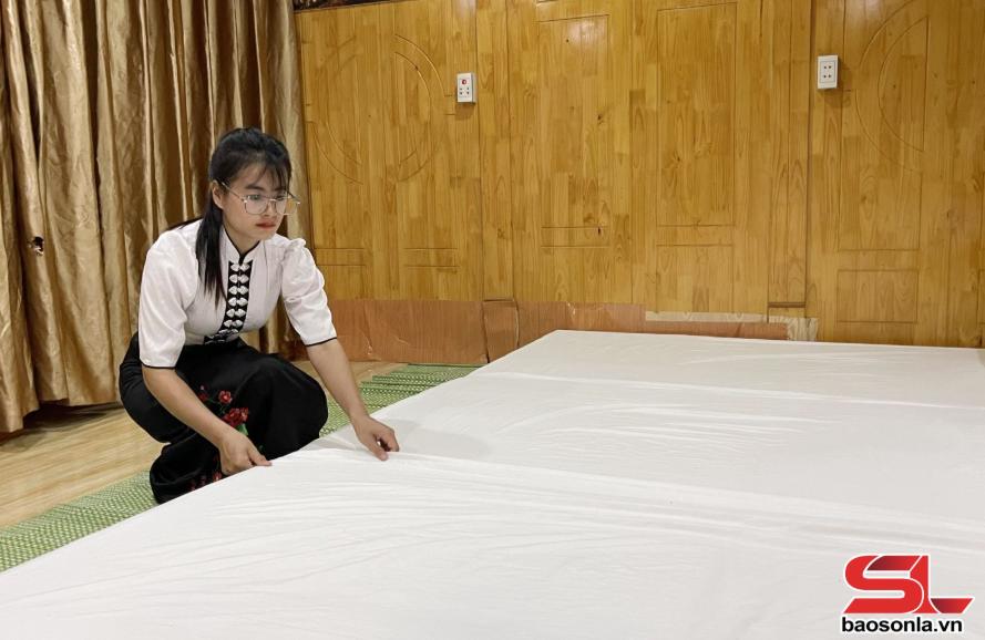 Homestay Sơn Khè, bản Mòng, chỉnh trang cơ sở vật chất để đón khách lưu trú.