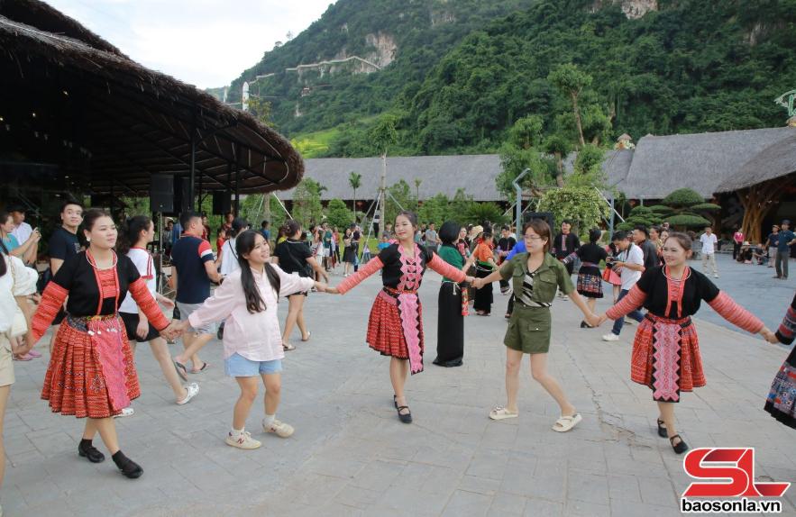 Du khách trải nghiệm không gian văn hóa tại Khu du lịch Mộc Châu Island.