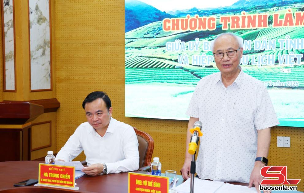 Phát biểu tại cuộc làm việc, Chủ tịch Hiệp hội Du lịch Việt Nam nhấn mạnh: Sơn La có nhiều tiềm năng, lợi thế để phát triển du lịch, do đó cần quan tâm nghiên cứu, xây dựng các chính sách phù hợp nhằm thúc đẩy ngành du lịch phát triển bền vững. Trong đó, chú trọng xây dựng chính sách phát triển du lịch phù hợp với điều kiện mới sau sáp nhập; phát triển các sản phẩm du lịch đặc trưng, độc đáo, có khả năng cạnh tranh; nâng cao cả số lượng, chất lượng nguồn nhân lực; có chiến lược xúc tiến, quảng bá và kết nối doanh nghiệp. Hiệp hội Du lịch Việt Nam cam kết sẽ đồng hành, hỗ trợ tỉnh trong công tác tư vấn chính sách, góp phần đưa du lịch Sơn La phát triển bền vững trong thời gian tới.
