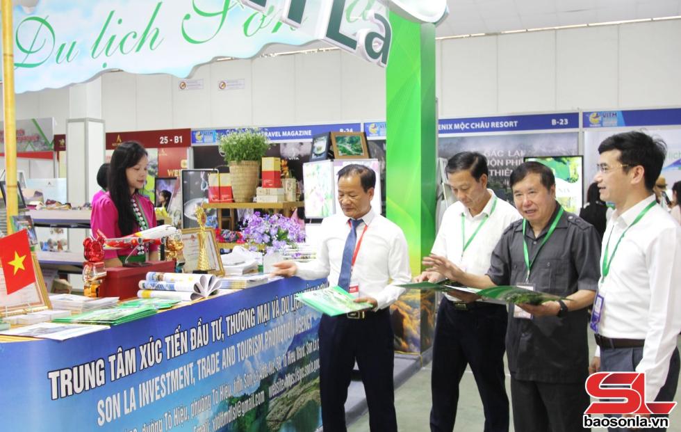 Các đại biểu tham quan gian hàng của tỉnh Sơn La tại Hội chợ.