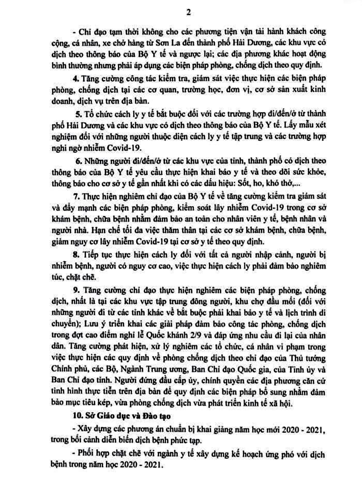 Trước tình hình diễn biến của dịch Covid-19; ngày 20 tháng 8 năm 2020, Ban Chỉ đạo phòng chống dịch Covid-19 tỉnh (gọi tắt là Ban Chỉ đạo 202) đã ban hành công văn số 90/CV-BCĐ về việc tăng cường các biện pháp phòng, chống dịch Covid-19.